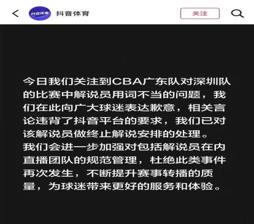 真相大白,CBA解说内涵广东球迷身份被扒,平台回应:已经停职了