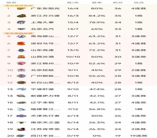 CBA最新积分榜