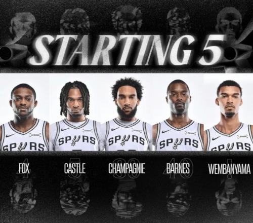 首发阵容方面,马刺队这边,索汉因伤缺阵,主帅排出的最新首发五人组为:福克斯、卡斯尔、尚帕尼、巴恩斯、文班亚马;火箭队这边,范弗利特和亚当斯赛季报销,首发阵容为:阿门-汤普森、塔里-伊森、凯文-杜兰特、小贾巴里-史密斯、阿尔佩伦-申京。